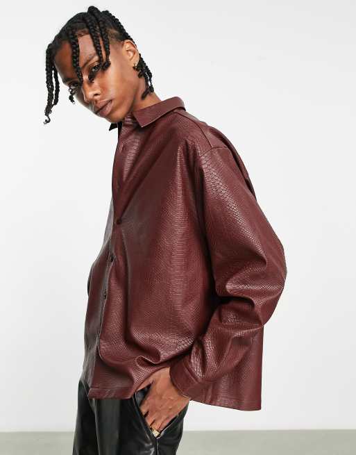 ASOS DESIGN - Chemise oversize coupe carrée imitation cuir effet croco - Bordeaux