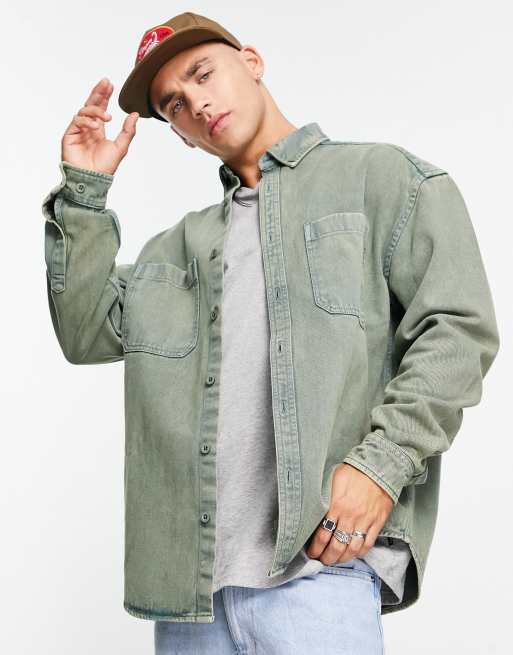 ASOS DESIGN - Chemise oversize en jean - Vert délavé