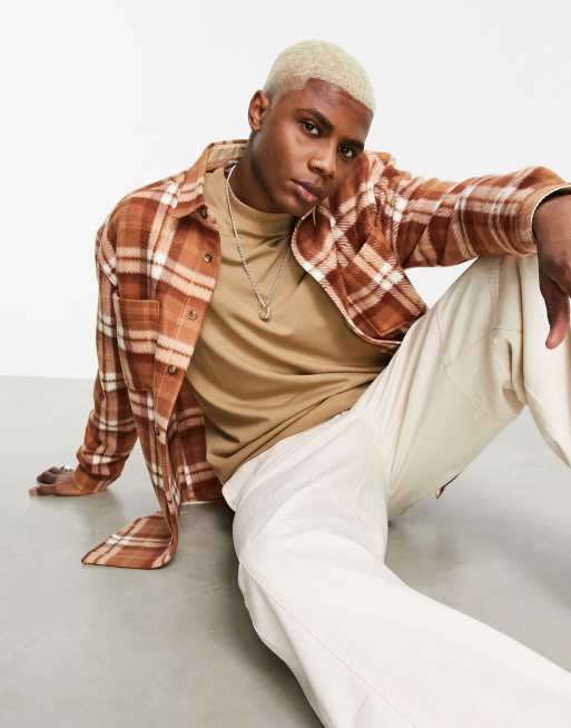 ASOS DESIGN - Chemise oversize en polaire à carreaux style années 90 - Marron