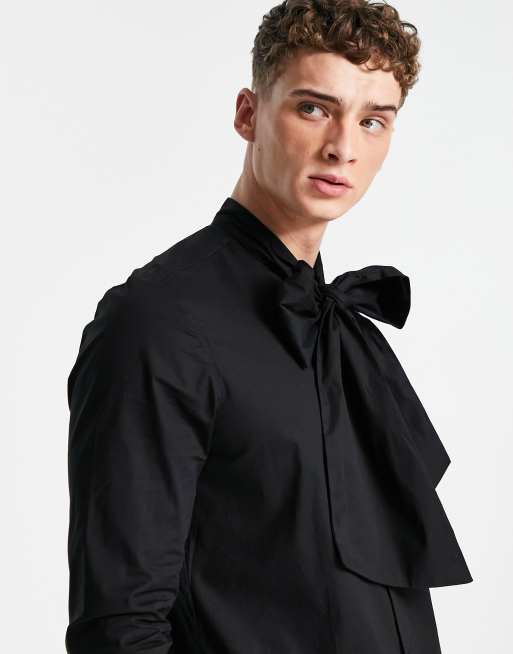 ASOS DESIGN - Chemise oversize en popeline avec nœud lavallière - Noir