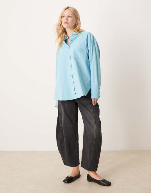 ASOS DESIGN - Chemise oversize en popeline avec poignets larges - Bleu