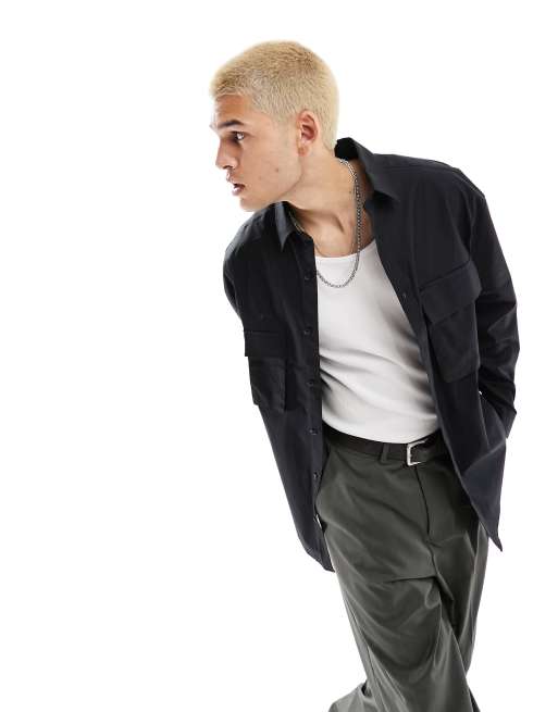 ASOS DESIGN - Chemise oversize en popeline style années 90 avec poches fonctionnelles en 3D - Noir