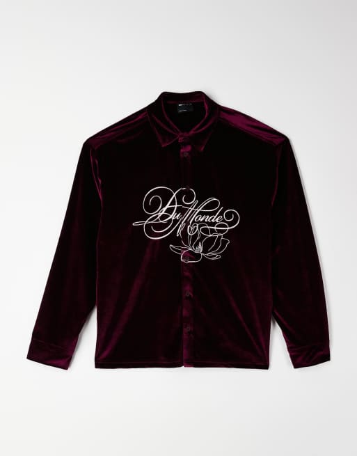 ASOS DESIGN - Chemise oversize en velours avec broderies - Bordeaux