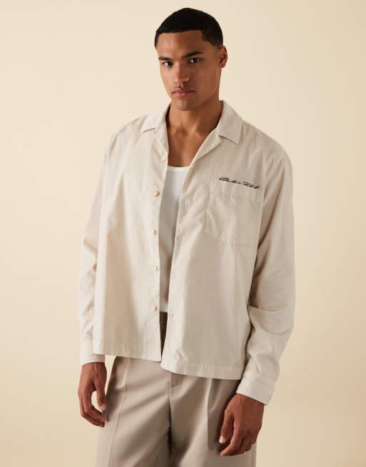 ASOS DESIGN - Chemise oversize en velours côtelé à broderies - Crème