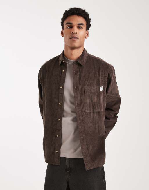 ASOS DESIGN - Chemise oversize en velours côtelé avec écusson - Marron