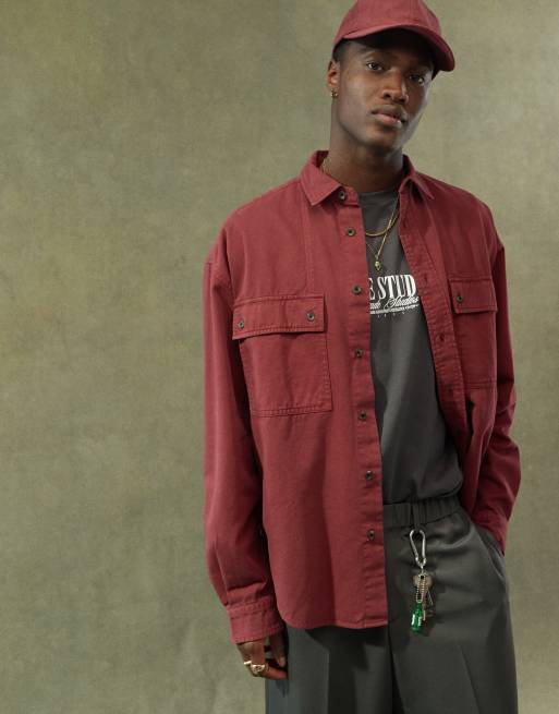ASOS DESIGN - Chemise oversize style années 90 avec col droit - Bordeaux