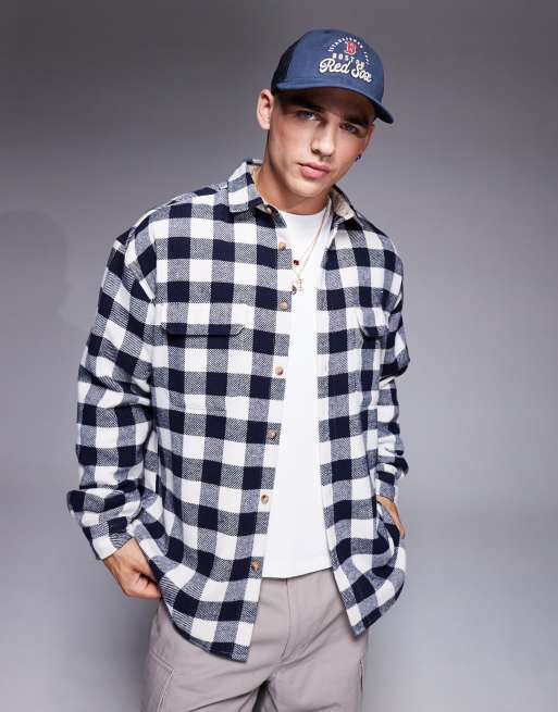 ASOS DESIGN - Chemise oversize style années 90 en laine mélangée à carreaux - Bleu marine