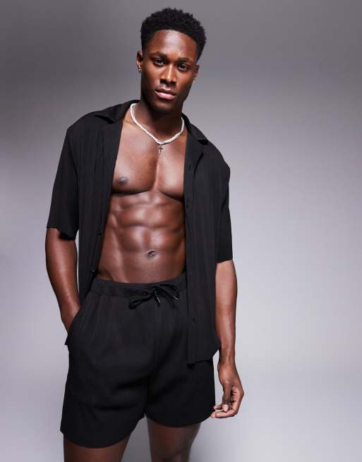 ASOS DESIGN - Chemise plissée d'ensemble coupe carrée ample - Noir