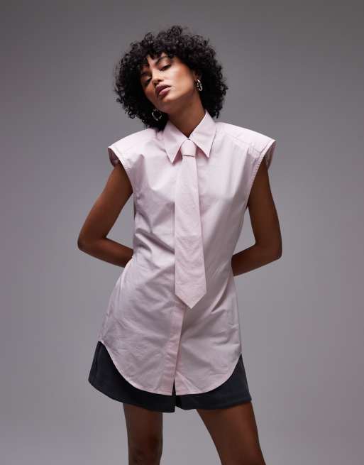 ASOS DESIGN - Chemise sans manches à épaulettes et ceinture - Rose