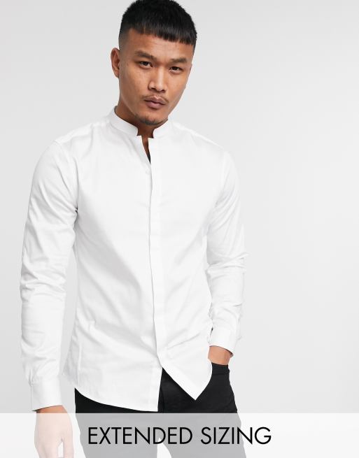 ASOS DESIGN - Chemise slim en satin avec col officier - Blanc