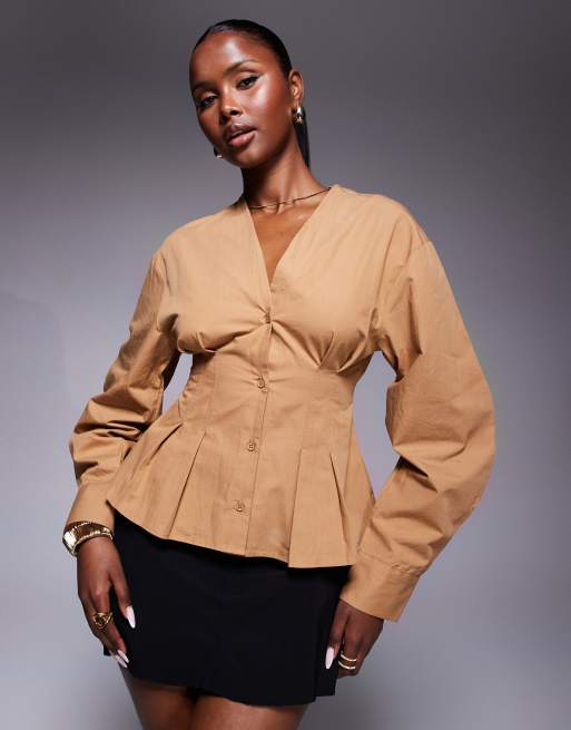 ASOS DESIGN - Chemise structurée à manches longues avec plis - Moka