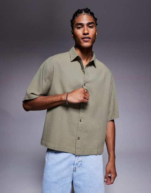 ASOS DESIGN - Chemise texturée coupe carrée oversize - Kaki