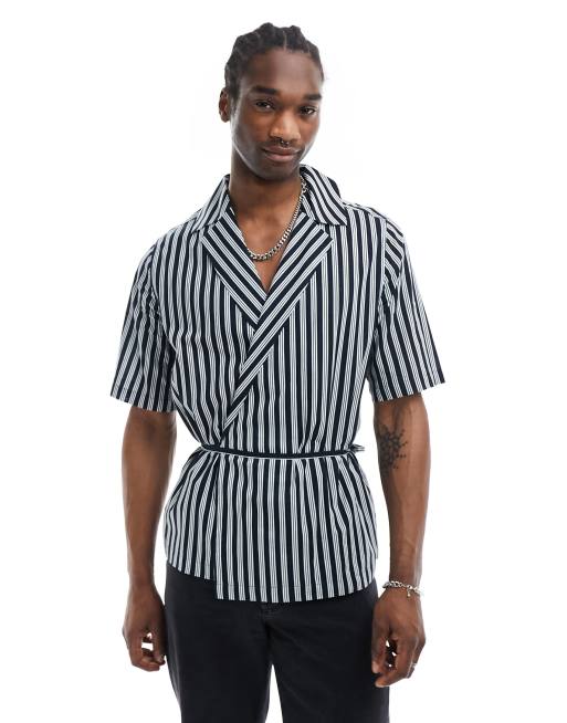 ASOS DESIGN - Chemise workwear coupe croisée décontractée à rayures avec lien noué et col à revers