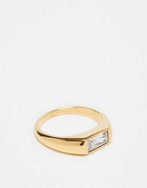 ASOS DESIGN - Chevalière en acier inoxydable étanche ornée de strass - Doré