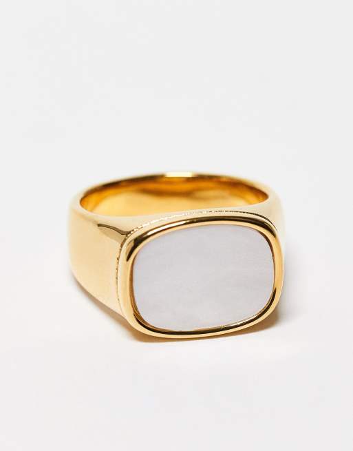 ASOS DESIGN - Chevalière en acier inoxydable résistant à l'eau avec pierre nacrée fantaisie - Doré