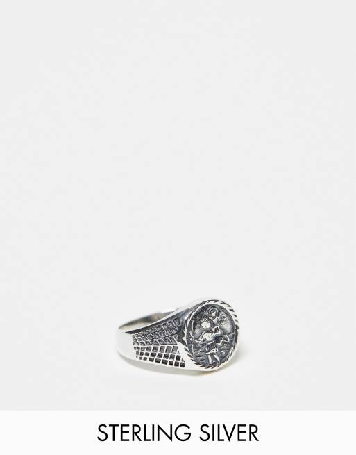 ASOS DESIGN - Chevalière en argent massif avec motif Saint Christophe - Argent