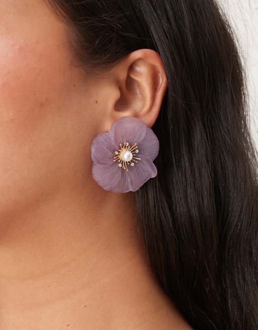 ASOS DESIGN - Clous d'oreilles à charm fleur en acrylique - Rose fumé