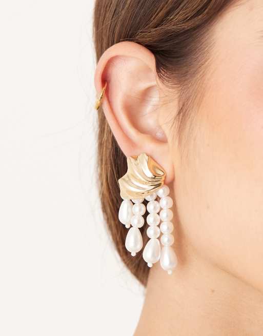ASOS DESIGN - Clous d'oreilles effet fondu avec pendant perle fantaisie - Doré