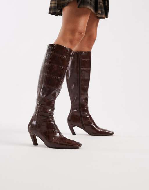 ASOS DESIGN - Colette - Bottes hauteur genou effet croco à bout affiné - Marron