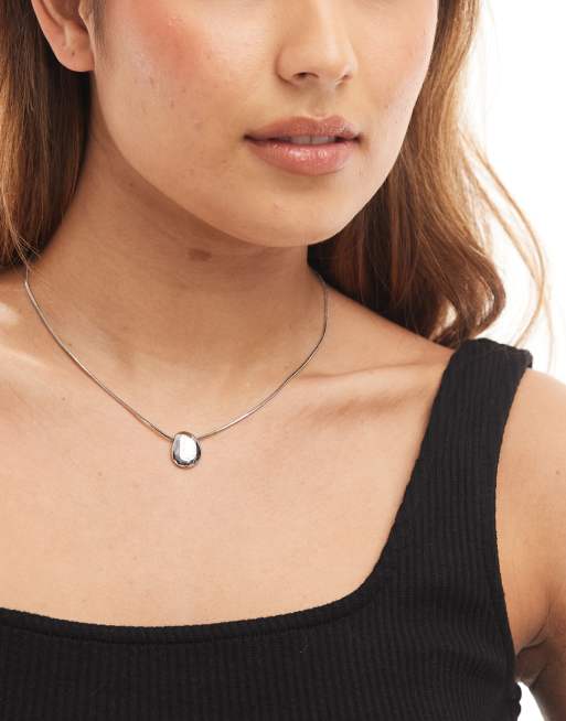ASOS DESIGN - Collier à pendentif galet effet fondu - Argenté