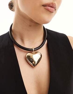 ASOS DESIGN - Collier avec cordon en PU et pendentif cœur oversize