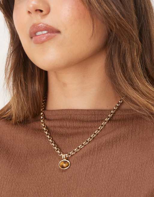 ASOS DESIGN - Collier avec pendentif pierre œil-de-tigre semi-précieuse - Doré