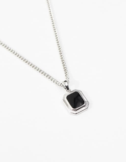 ASOS DESIGN - Collier avec pendentif pierre noire - Argenté