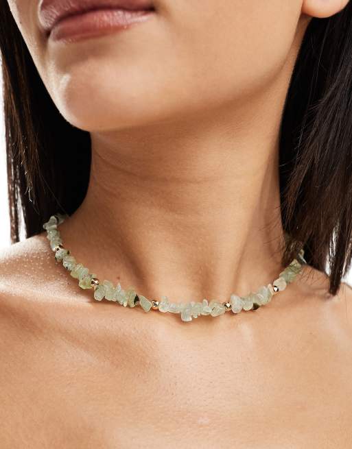 ASOS DESIGN - Collier avec pierres vertes semi-précieuses et perles dorées