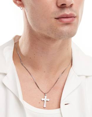 ASOS DESIGN - Collier en acier inoxydable imperméable avec pendentif croix - Argenté