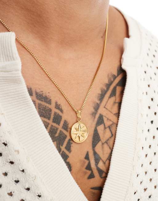 ASOS DESIGN - Collier en acier inoxydable imperméable avec pendentif rond - Doré
