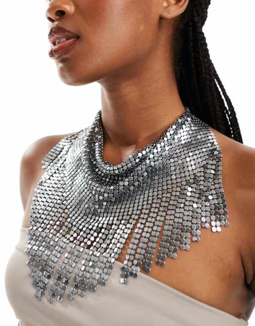 ASOS DESIGN - Collier en cotte de maille avec pampilles - Gris acier