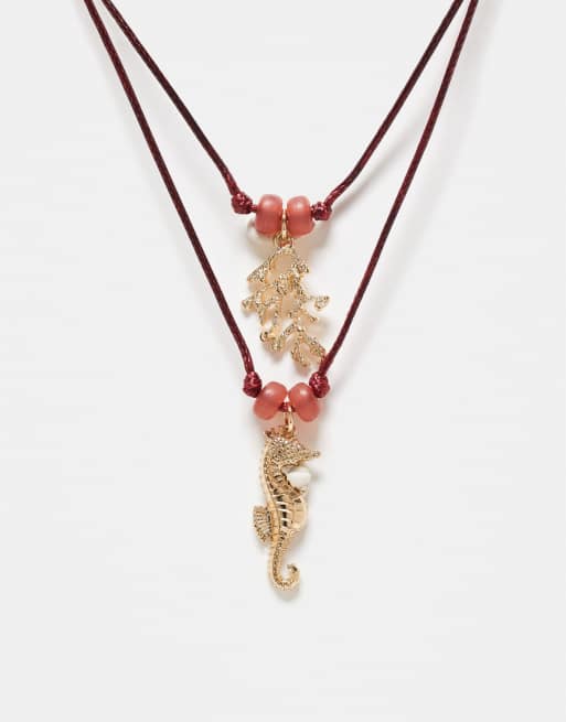 ASOS DESIGN - Collier multi-rangs avec cordon rouge et charms marins - Doré