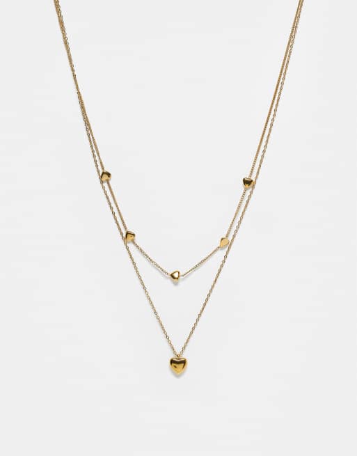 ASOS DESIGN - Collier multi-rangs en acier inoxydable étanche avec pendentif cœur - Doré