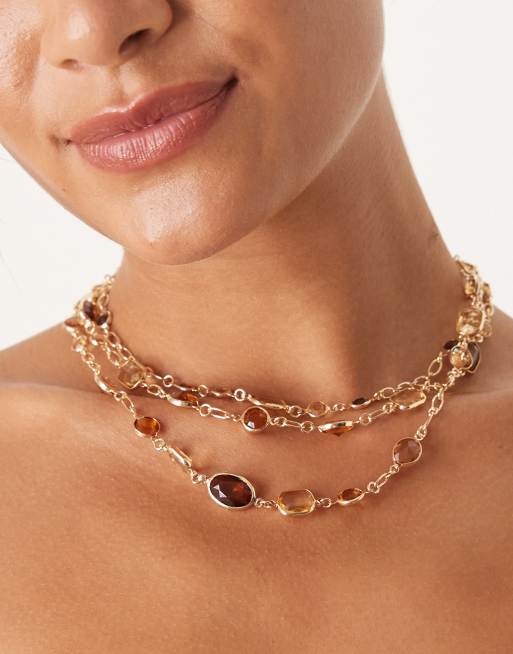 ASOS DESIGN - Collier multi-rangs orné de pierres ambre - Doré