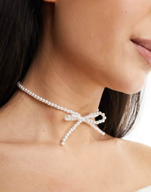 ASOS DESIGN - Collier ras du cou à perles fantaisie et nœud