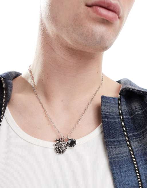 ASOS DESIGN - Collier style festival avec pierre semi-précieuse et pendentif Saint-Christophe - Argenté