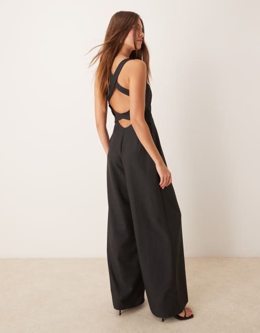 ASOS DESIGN - Combinaison à encolure carrée structurée avec détail croisé dans le dos - Anthracite