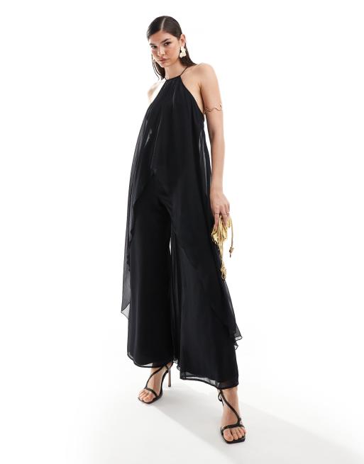 ASOS DESIGN - Combinaison à encolure licou avec superposition - Noir
