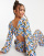 ASOS DESIGN - Combinaison à manches longues en crêpe effet boule boutonnée au dos - Bleu fleuri