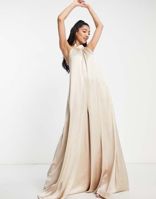 ASOS DESIGN - Combinaison ample en satin avec dos nu et liens derrière la nuque - Champignon