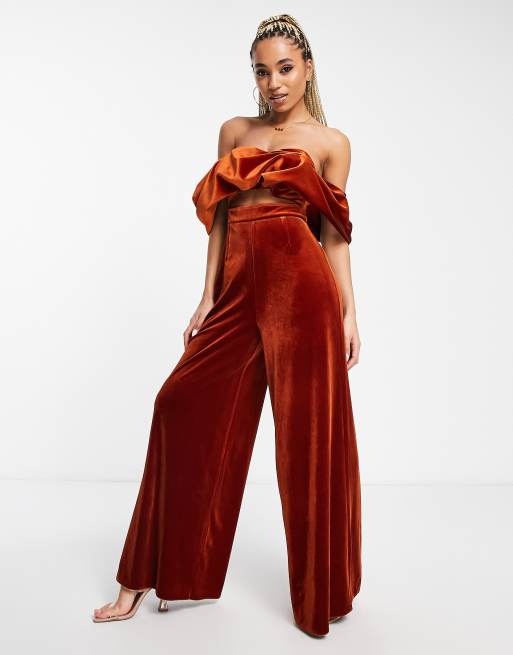 ASOS DESIGN - Combinaison ample en velours à épaules dénudées - Rouille