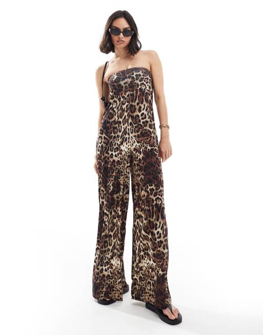ASOS DESIGN - Combinaison bandeau évasée à imprimé léopard