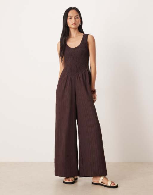 ASOS DESIGN - Combinaison effet froissé à encolure dégagée - Marron