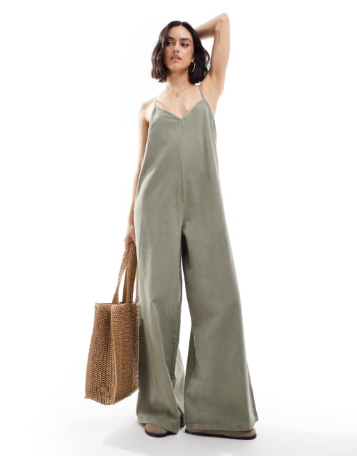 ASOS DESIGN - Combinaison en jean doux - Kaki