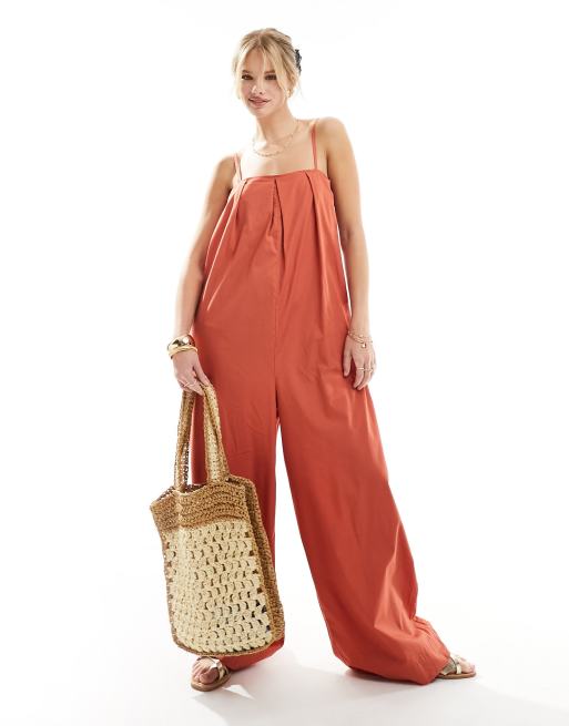 ASOS DESIGN - Combinaison large plissée à encolure carrée - Orange brûlé