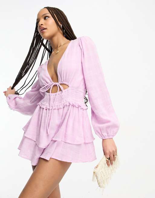 ASOS DESIGN - Combishort à volants et découpe en tissu texturé - Lilas