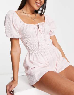 ASOS DESIGN - Combishort de plage tendance folk en crépon - Rose