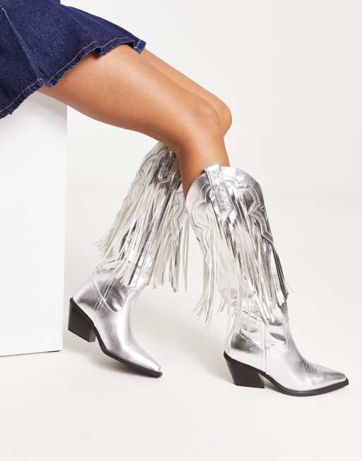 ASOS DESIGN - Comet - Bottes hauteur genou à franges style western - Argenté