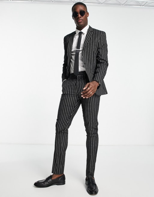 ASOS DESIGN - Costume ajusté à fines rayures - Noir et blanc