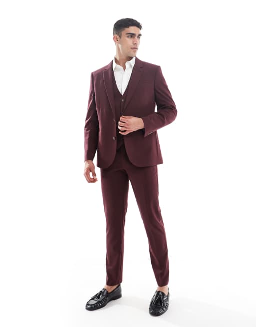 ASOS DESIGN - Costume ajusté - Bordeaux